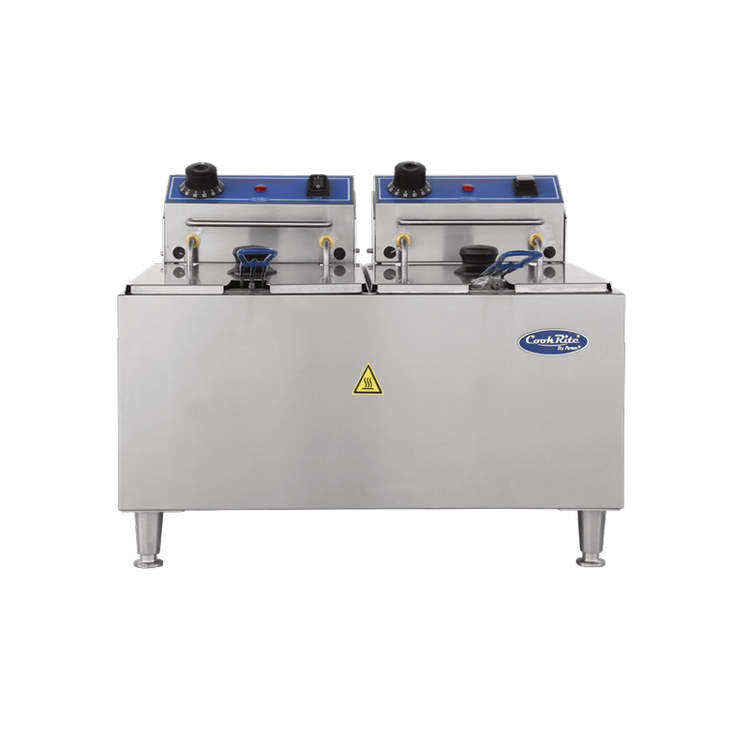 The Atosa USA, Inc. ACEF-32 is a highly efficient electric countertop fryer designed to meet various frying needs. It features a compact design with dimensions of 21-11/16"W x 18-1/2"D x 17-3/16"H and comes equipped with two nickel-plated fry baskets that accommodate a generous 32 lb. fat capacity. These fry baskets feature insulated handles for safe and easy handling. The stainless steel construction not only enhances durability but also provides a sleek and professional appearance, making it an ideal choice for busy commercial kitchens. This fryer also includes removable stainless steel fry baskets for easy cleaning, built-in basket hooks to secure the baskets when not in use, and a control box with swing-up elements for convenient operation. The thermostat ranges from 70 to 375°F, offering precision in temperature control. With (2) 3.8kW heating elements, this unit operates efficiently on (2) 240v/60/1-ph power supply, needing (2) 15.1 amps. Each unit is provided with (2) cords and plugs, equipped with NEMA 6-20P connectors. Its sturdy legs ensure stability during use, making it a reliable tool for consistent frying tasks.