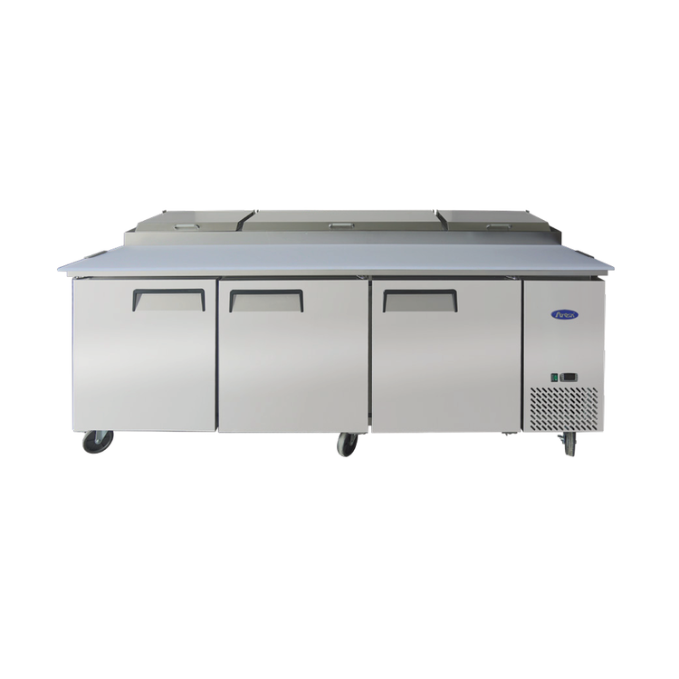 Atosa MPF8203GR Atosa Refrigerated Pizza Prep Table Three-section 93"W X 33-1/0"D X 44"H