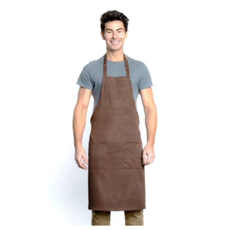 Empura, 167601BACBR, Bib Apron, 34" x 30", (2) front pockets, 80/20 poly-cotton blend, machine washable, brown, Chef Approved