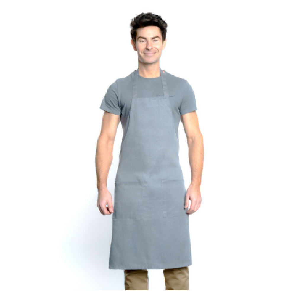 Empura, 167601BACGR, Bib Apron, 34" x 30", (2) front pockets, 80/20 poly-cotton blend, machine washable, gray, Chef Approved