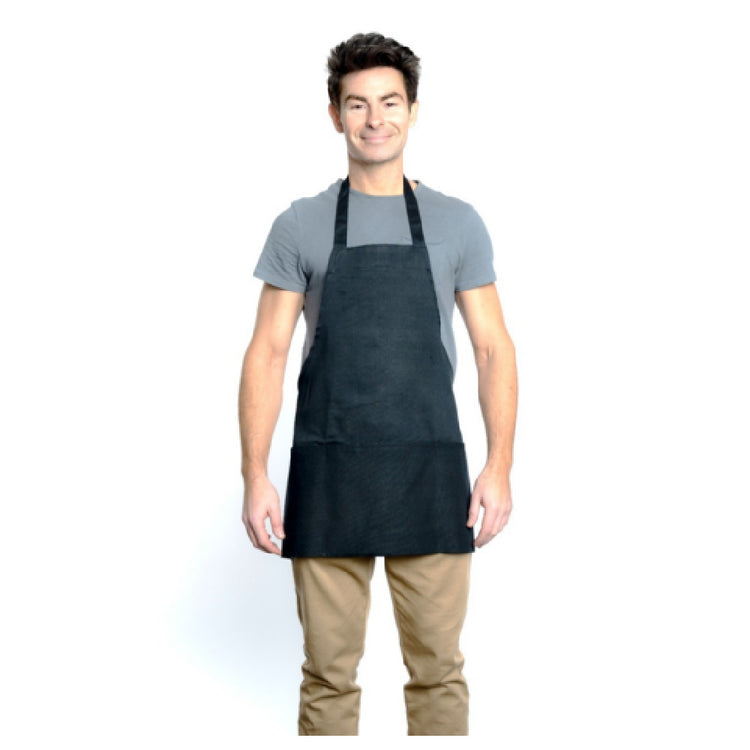 Empura, 167BAFHBK, Bib Apron, half length, 25" x 28", (2) front pockets, 65/35 poly-cotton blend, machine washable, black, Chef Approved