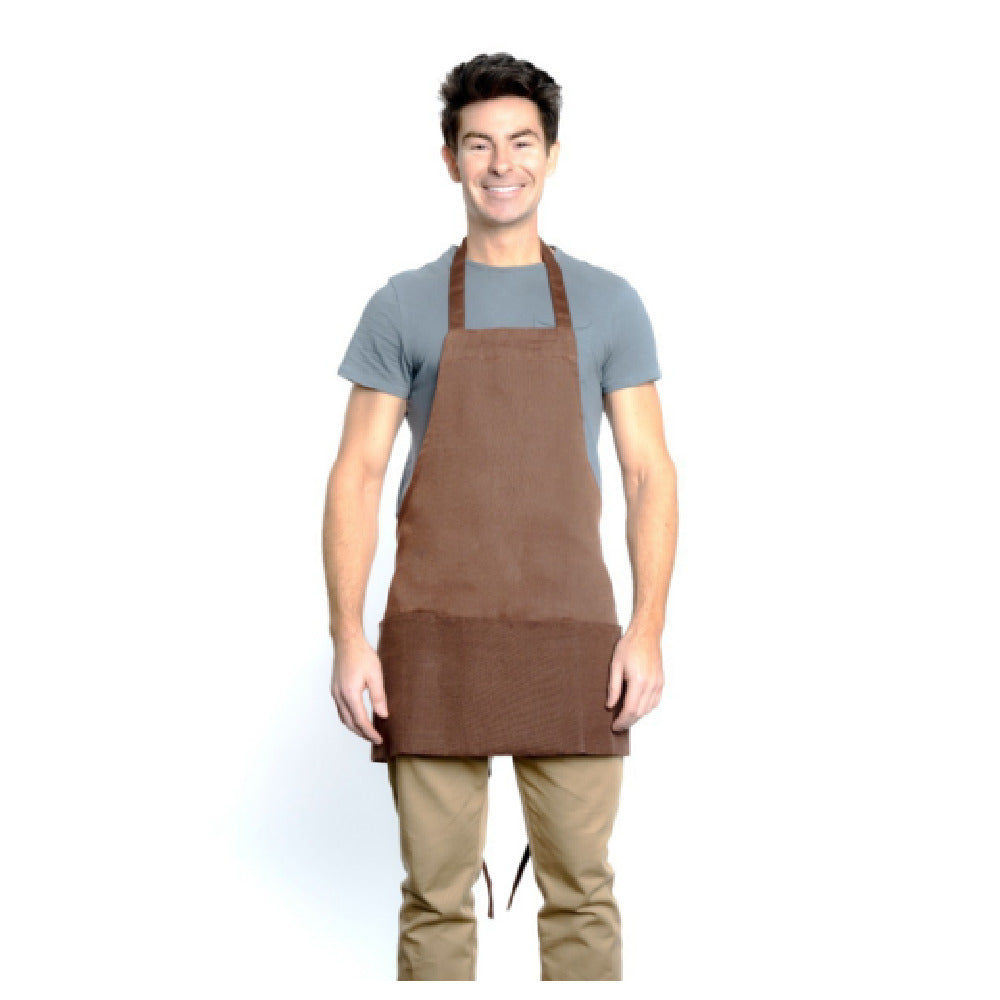 Empura, 167BAFHBR, Bib Apron, 25" x 28", half length, (2) front pockets, 65/35 poly-cotton blend, machine washable, brown, Chef Approved