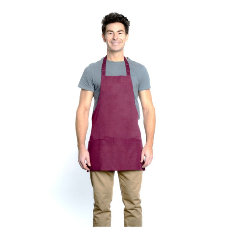 Empura, 167BAFHBU, Bib Apron, half length, 25" x 28", (2) front pockets, 65/35 poly-cotton blend, machine washable, burgundy, Chef Approved