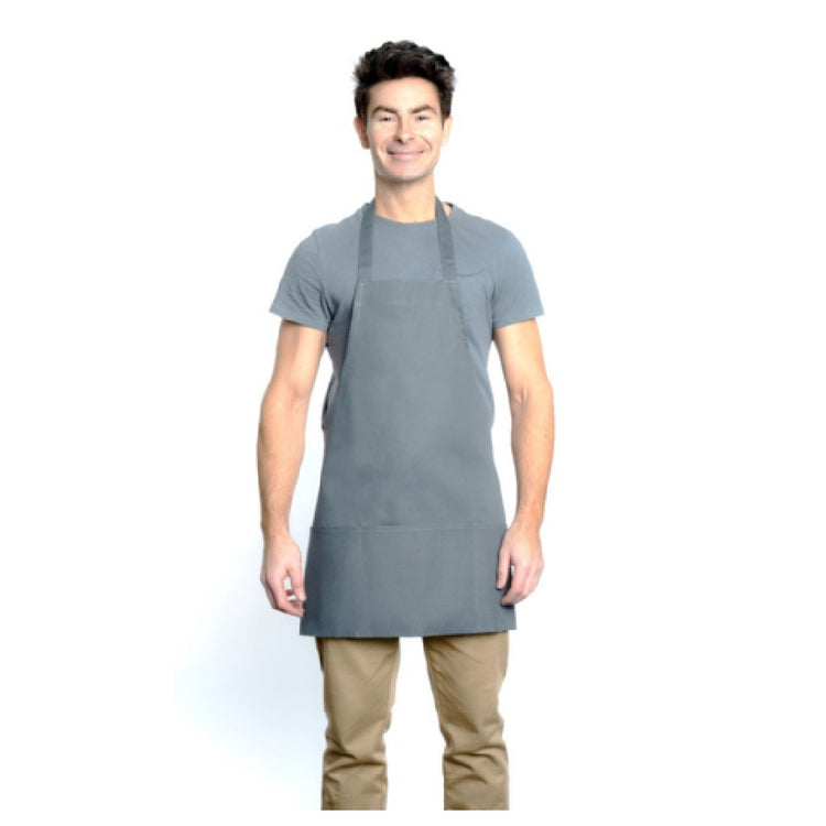 Empura, 167BAFHGR, Bib Apron, half length, 25" x 28", (2) front pockets, 65/35 poly-cotton blend, machine washable, gray, Chef Approved
