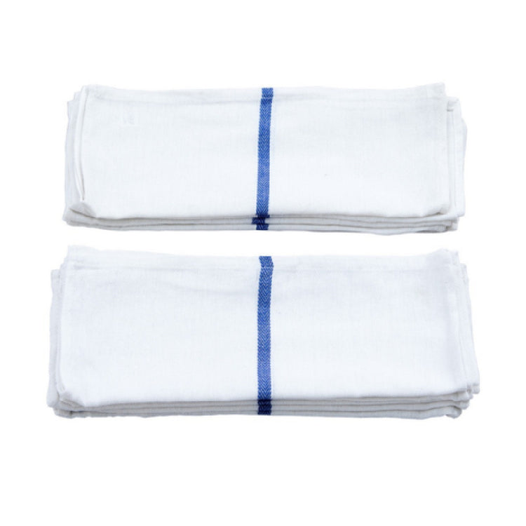 Empura, 167KITCHTWEL, Dish cloth, 15" x 26", extra large size, 100% cotton, machine washable, white/blue with blue strip, Chef Approved
