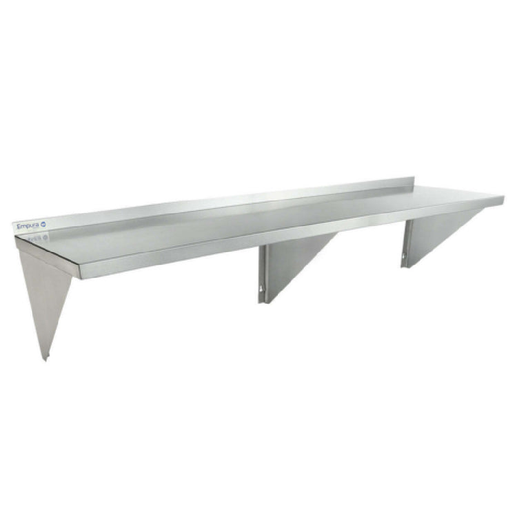 Empura, 1872WS16G, Wall Mount Storage Shelf, 72"W x 18"D x 15.75"H, heavy duty 16 gauge 430 stainless steel shelf and brackets, three brackets, NSF, Empura Stainless