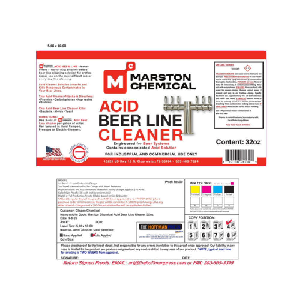 Marston Chemical 300190 Acid Beer Line Cleaner 32 Oz Heavy-duty Alkaline-based Beer Line Cleaning Solution