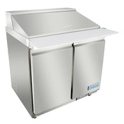Empura, E-KSP36M, Refrigerated Sandwich/Salad Mega Top Prep Table, 36.2"W x 34.5"D x 43.2"H, 7.7 cu. ft. capacity, (2) swing doors, 2 shelves, 15 pan capacity, 2.5" caster, painted stainless steel and aluminum framework, 33°F to 41°F temperature range, R290 CFC-free refrigerant, foam insulation, electronic thermostat, digital LED temperature display, removable magnetic door gasket, electronic thermostat, NEMA-5-15P power cord, 115v/60Hz/1ph, ETL, ETL Sanitation, Tested and conforms to NSF-7 Standards, Empura Refrigeration