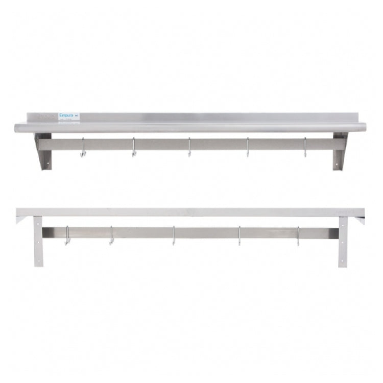 Features: The EMPURA E-PS-12-60 features a durable 18-gauge 430 stainless steel construction for long-lasting performance. The included shelf provides additional storage space, and five chrome-plated hooks offer convenient hanging options for pots, pans, and utensils. The unit integrates seamlessly into various kitchen environments.
