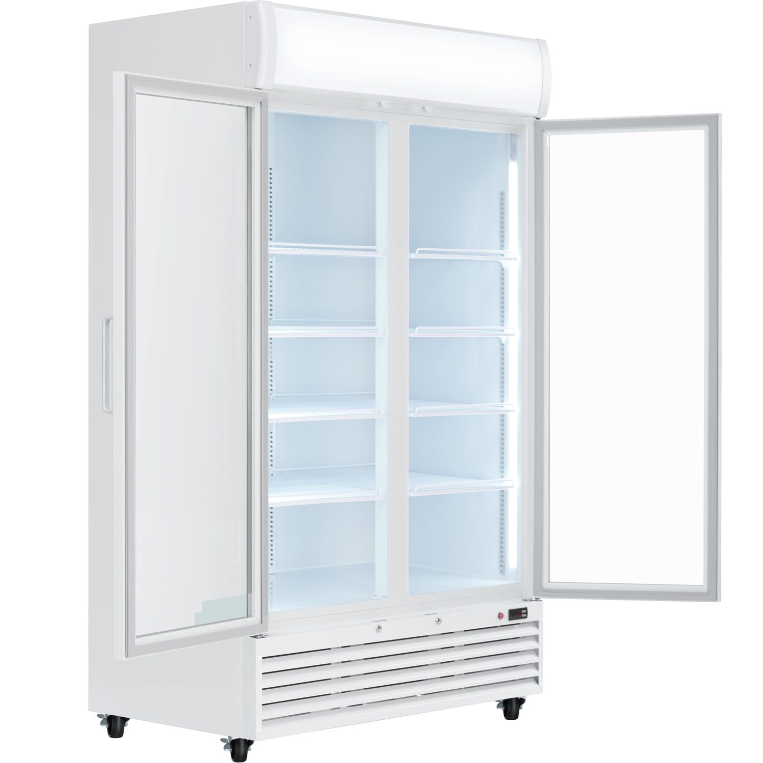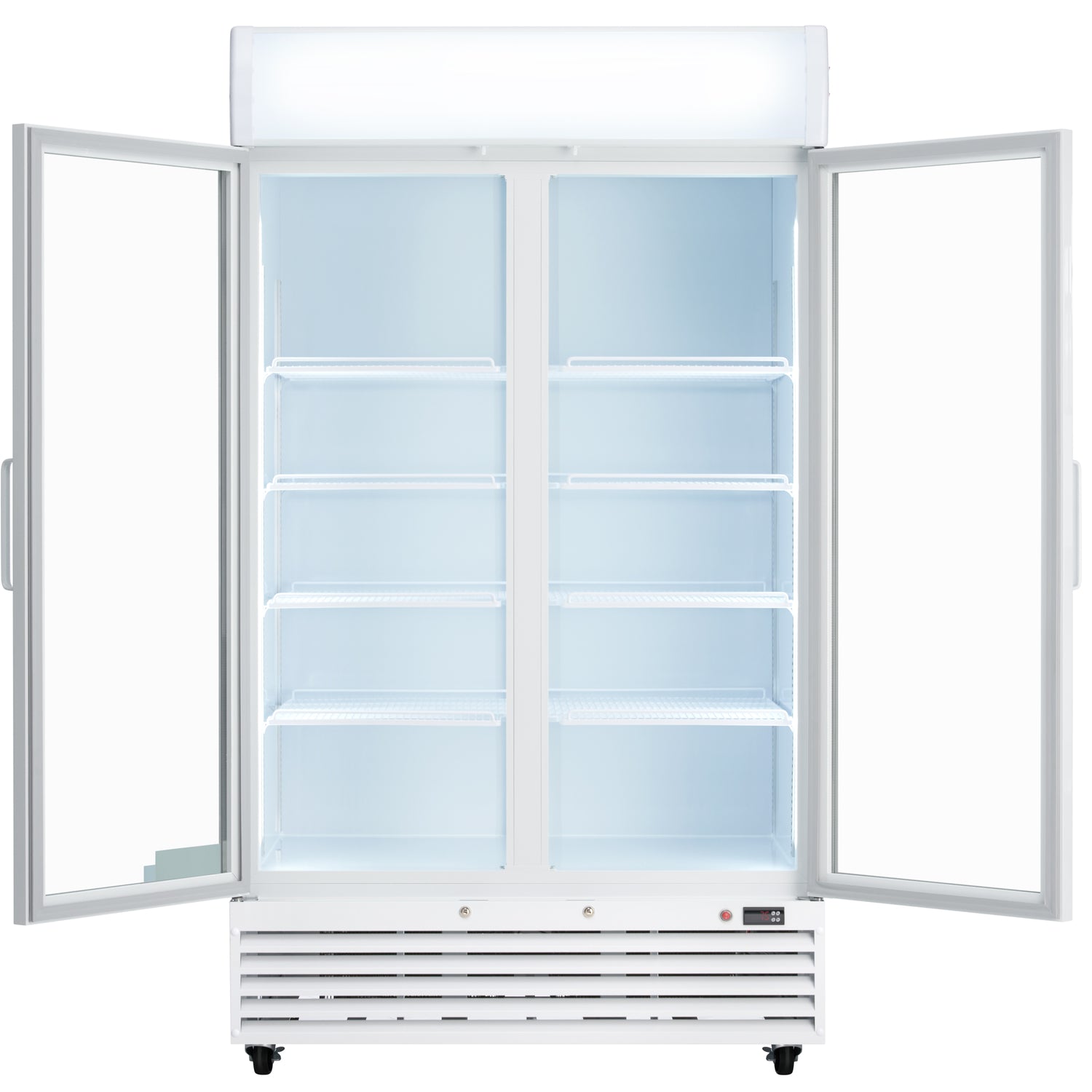 Empura, EGM-36W, Refrigerated Merchandiser, 44.49"W x 28.35"D x 79.65"H, 35 cu. ft. capacity, (2) glass swing doors, (8) shelves, white exterior and interior, 32-50 F temperature range, 1/7 HP back compressor, electronic thermostat, digital LED temperature display, foamed-in place high-density CFC-free polyurethane insulation, 1,276 BTU/h, US plug type, 3.3 amps, 110v/60Hz/1ph, ETL, ETL Sanitation, cETLus, Tested and conforms to NSF-7 Standards, Empura Refrigeration