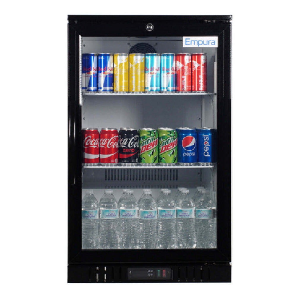 Empura, EGM-7B, Counter Top Merchandiser, 1 glass swing door, 25 9/16"W x 25 1/8"D x 39"H, 7 cu. ft. capacity, 2 shelves, stainless steel black exterior and white interior, 33-41 F temperature, 115v/60hz/1ph, NEMA-5-15P power cord, electronic thermostat with digital LED display, 60 mm insulation, magnetic gasket replaceable without tools, auto defrosting and evaporation, HC refrigerant, ETL, ETL Sanitation, Tested and conforms to NSF-7 Standards, Empura Refrigeration