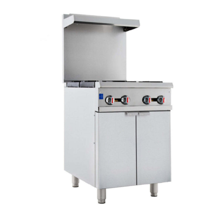 Empura, EGR-24FC, Single Base Gas Range, natural gas, 24"W x 32-5/8"D x 60-1/8"H, freestanding installation, cabinet base, 10-1/8" stainless steel top shelf, 21-3/4" stainless steel backsplash, 6" stainless steel adjustable plate mounted legs, 120,000 total BTU, 3/4" rear national pipe thread gas connection, field conversion kit to liquid propane gas included, ETL, ETL Sanitation, cETLus, Tested and conforms to NSF/ANSI Std. 4, Empura Equipment