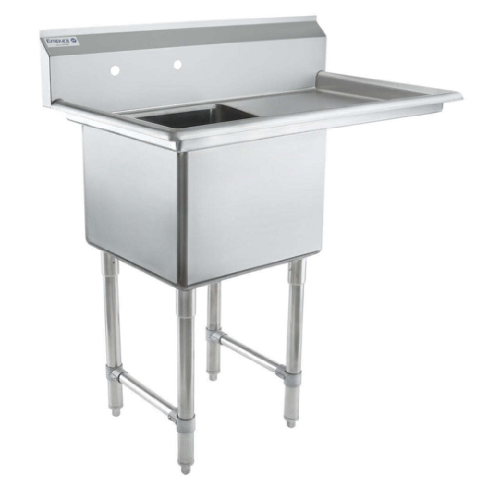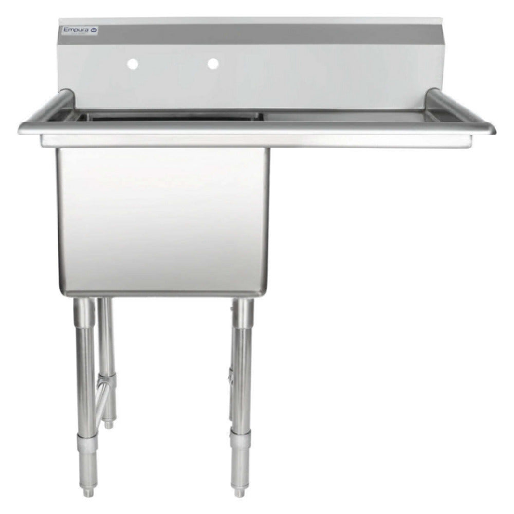 Empura, EHD11818R18, Sink, 38.5"W x 23.5"D x 44.25"H, (1) compartment, heavy duty, 16 gauge 304 stainless steel, all stainless steel structure (gussets/legs/cross braces/adjustable bullet feet), (1) 18" right drainboard, (1) bowl 18"L x 18"W x 14"D, 9.75" back splash, NSF, Empura Stainless
