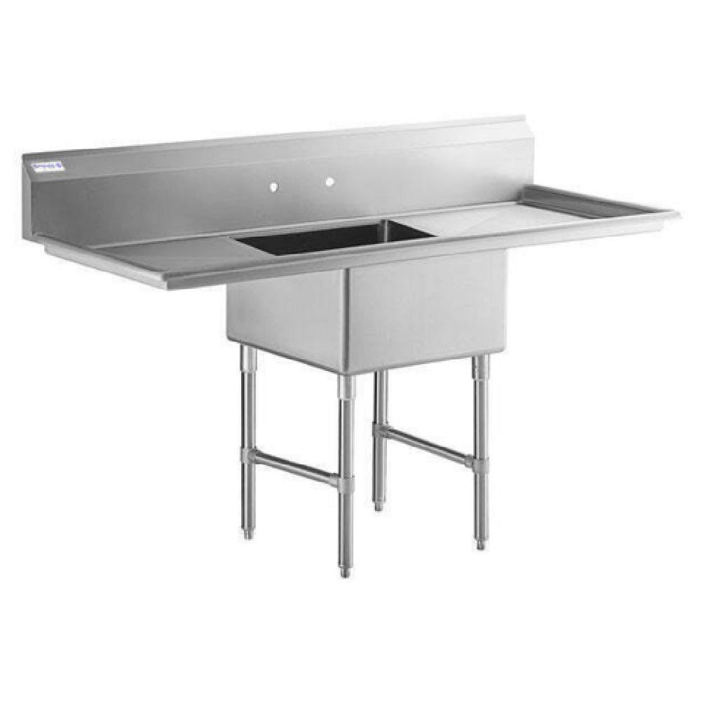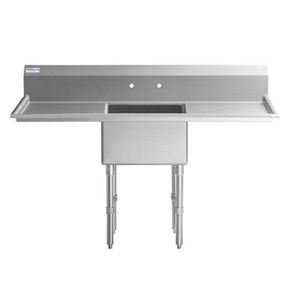 Empura, EHD12424LR24, Sink, 72"W x 29.5"D x 44.25"H, (1) compartment, heavy duty, 16 gauge 304 stainless steel, all stainless steel structure (gussets/legs/cross braces/adjustable bullet feet), (2) 24" drainboards, (1) bowl 24"L x 24"W x 14"D, 9.75" back splash, NSF, Empura Stainless