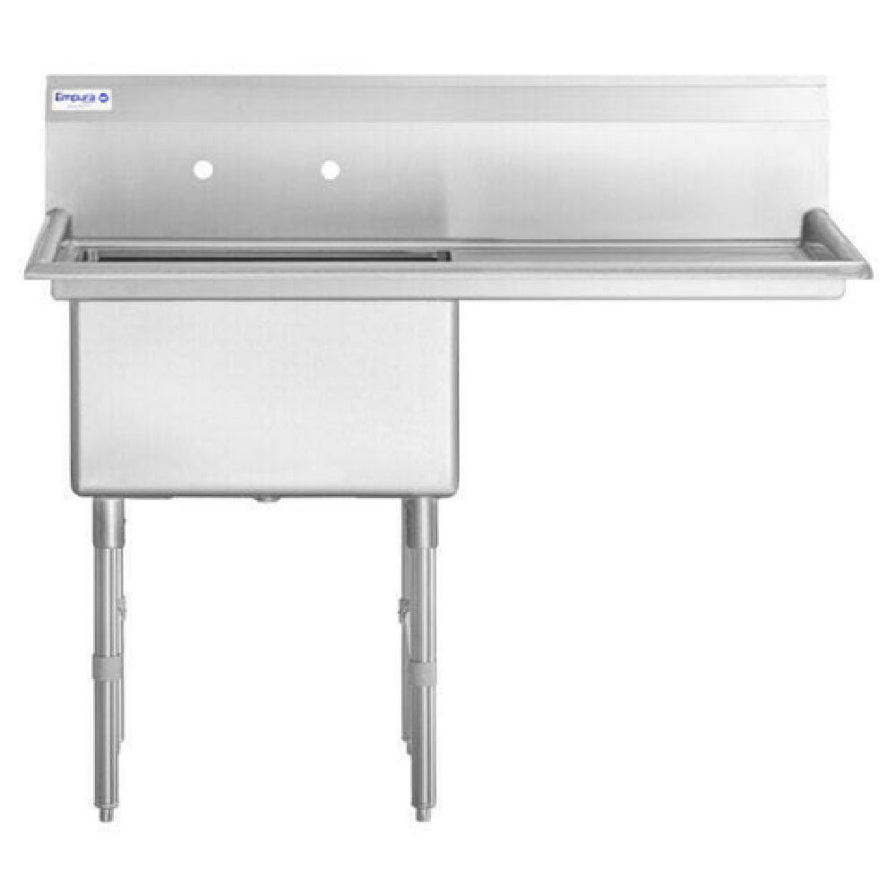 Empura, EHD12424R24, Sink, 50.5"W x 29.5"D x 44.25"H, (1) compartment, heavy duty, 16 gauge 304 stainless steel, all stainless steel structure (gussets/legs/cross braces/adjustable bullet feet), (1) 24" right drainboard, (1) bowl 24"L x 24"W x 14"D, 9.75" back splash, NSF, Empura Stainless