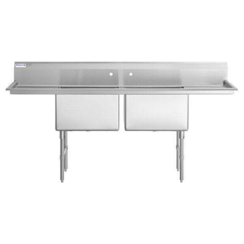 Empura, EHD22424LR18, Sink, 86"W x 29.5"D x 44.25"H, (2) compartment, heavy duty, 16 gauge 304 stainless steel, all stainless steel structure (gussets/legs/cross braces/adjustable bullet feet), (2) 18" drainboards, (2) bowls 24"L x 24"W x 14"D, 9.75" back splash, NSF, Empura Stainless