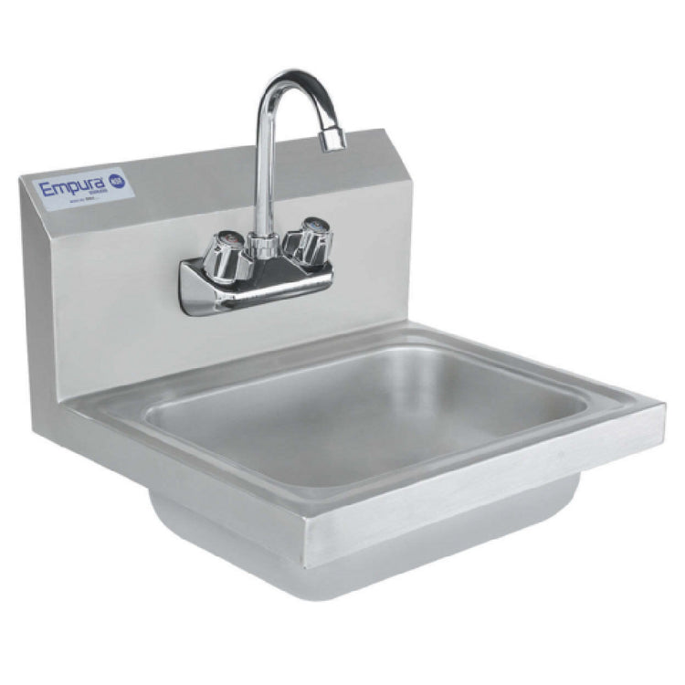Empura, EHS17, Hand Sink, 17"W x 15"D x 13"H, 15"D x 17"W x 13"H, 20 gauge 304 stainless steel, gooseneck faucet, 4" faucet center, singlebowl, bowl dimensions 14"L x 10"W x 5.5"D, 9.5" backsplash, 1.5 drain basket, NSF, Empura Stainless