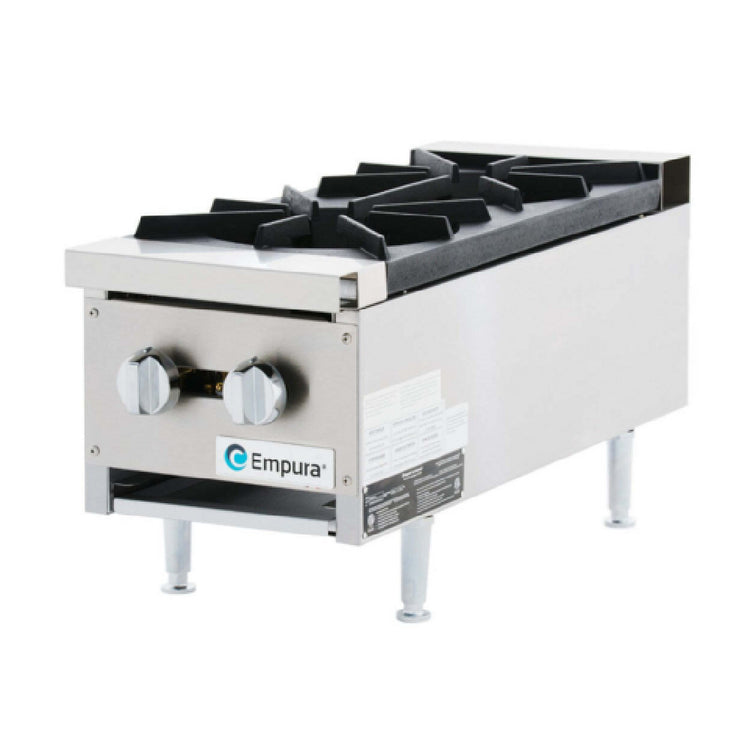 Empura Equipment EMHP2-HD Heavy Duty Gas Hot Plate 12"W X 29-3/8"D X 13-1/8"H With 12" X 12" Cast Iron Top Grates