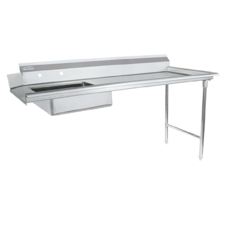 Empura, ESDT72R, Soiled Dishtable, 72"W x 30"D x 41.5"H, straight design, 16 gauge 304 stainless steel worktop, 7.5" backsplash, pre-rinsebowl 20"D x 20"W x 5"H, 3.5" drain basket included, all stainless steel structure (gussets/legs/cross braces/adjustable bullet feet), legs on right side, NSF, Empura Stainless