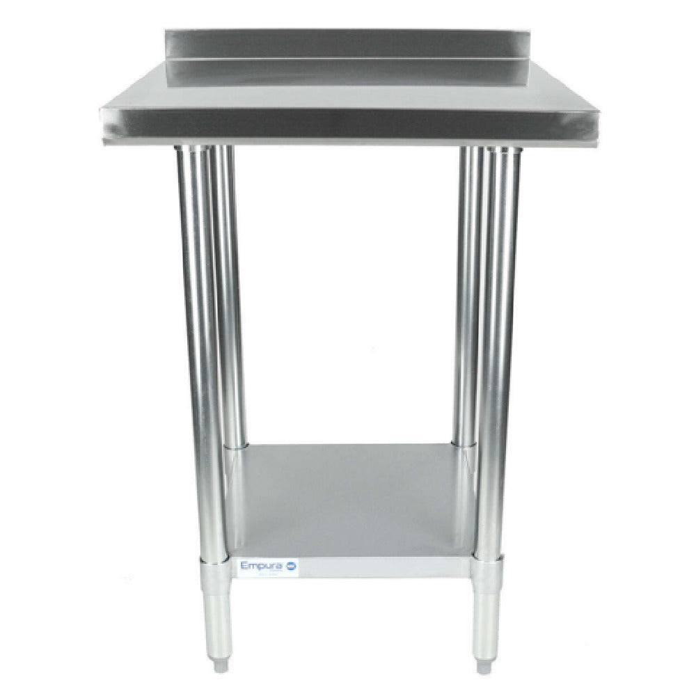 Empura, EWT2B2424, Work Table, 24"W x 24"D x 35"H, economy duty, 2 inch backsplash, plastic adjustable bullet feet, galvanized steel 1-5/8" diameter leg, galvanized steel hat channel, 18 gauge under shelf, galvanized steel under shelf, 18 gauge top shelf, 430 stainless steel top shelf, NSF, Empura Stainless