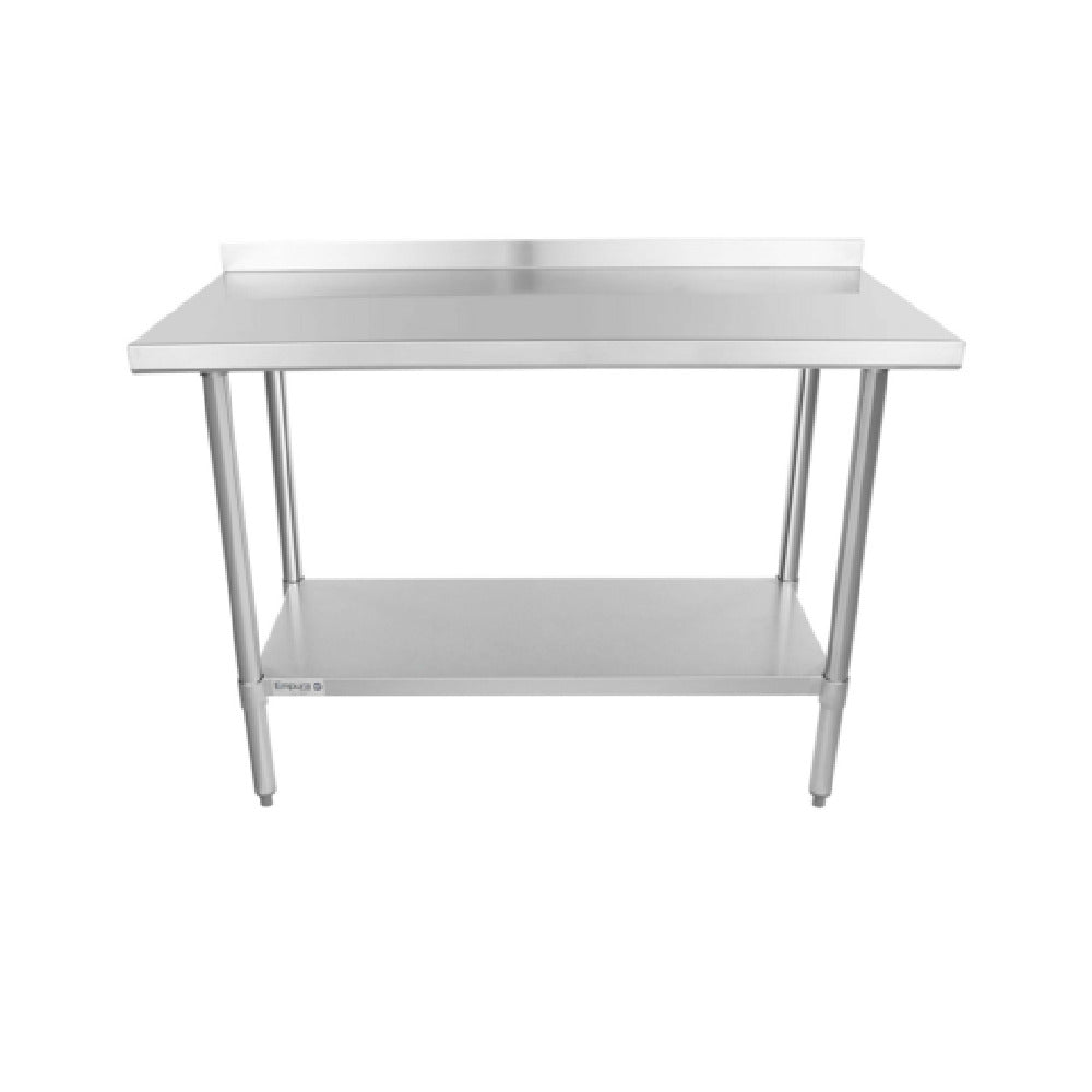 Empura, EWT2B2448, Work Table, 48"W x 24"D x 35"H, economy duty, 2 inch backsplash, plastic adjustable bullet feet, galvanized steel 1-5/8" diameter leg, galvanized steel hat channel, 18 gauge under shelf, galvanized steel under shelf, 18 gauge top shelf, 430 stainless steel top shelf, NSF, Empura Stainless