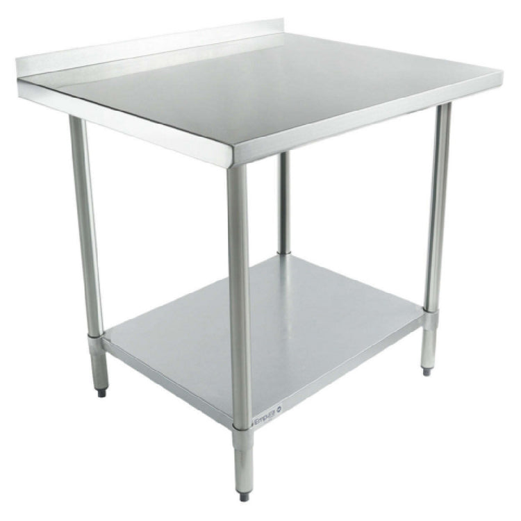 Empura, EWTB3036, Work Table, 36"W x 30"D x 35"H, economy duty, 2 inch backsplash, plastic adjustable bullet feet, galvanized steel 1-5/8" diameter leg, galvanized steel hat channel, 18 gauge under shelf, galvanized steel under shelf, 18 gauge top shelf, 430 stainless steel top shelf, NSF, Empura Stainless