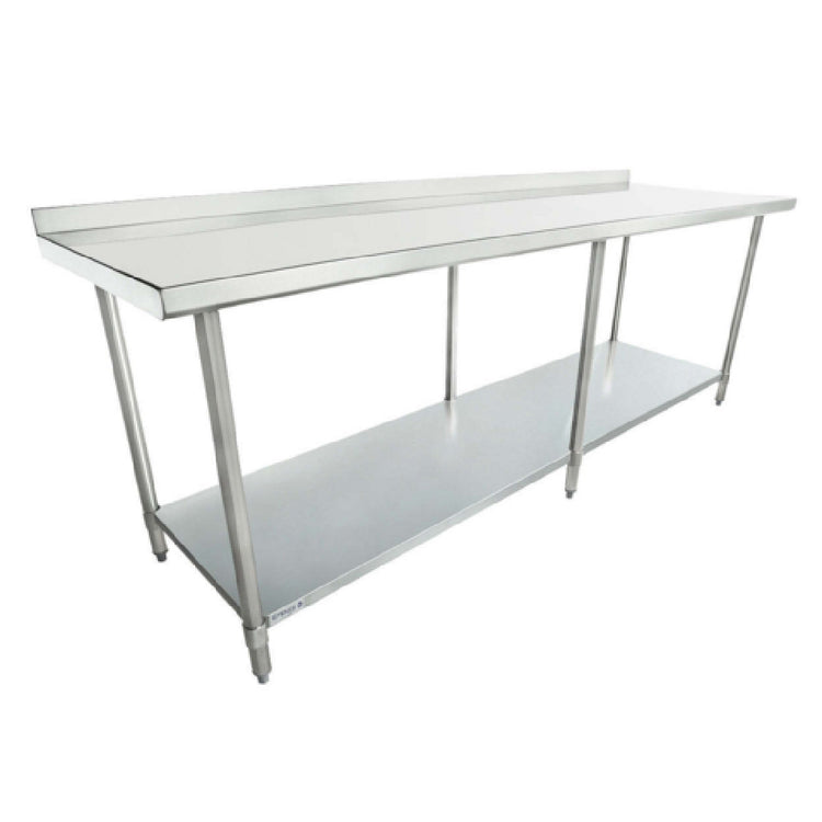 Empura, EWTB3096, Work Table, 96"W x 30"D x 35"H, economy duty, 2 inch backsplash, plastic adjustable bullet feet, galvanized steel 1-5/8" diameter leg, galvanized steel hat channel, 18 gauge under shelf, galvanized steel under shelf, 18 gauge top shelf, 430 stainless steel top shelf, NSF, Empura Stainless