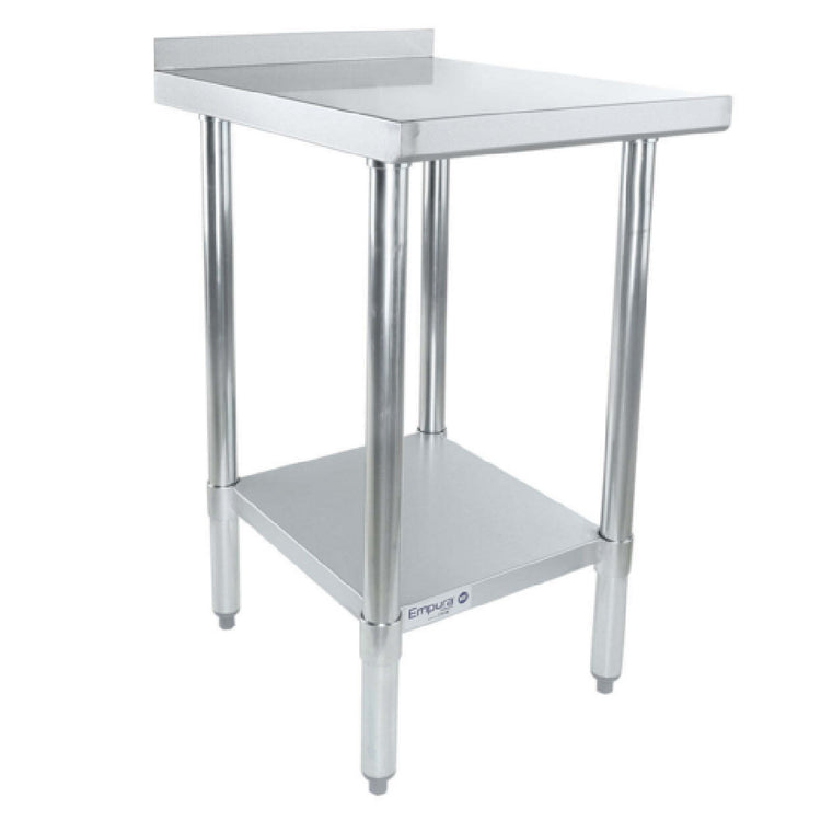 Empura, FT1824E, Filler Table, 18"W x 24"D x 34.75"H, 18 gauge 430 stainless steel, 1-1/2" backsplash, galvanized legs and undershelf, 420lb top shelf loading capacity, 300lb undershelf loading capacity, plastic adjustable bullet feet, NSF, Empura Stainless