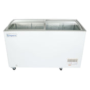 Empura, E-CFCG-12, Oblique Curved Lid Chest Freezer, 54.92"W x 25.75"D x 36.89"H, 11.8 cu. ft. capacity, -10F to 0 F temperature range, 115v-60hz-1ph, NEMA 5-15P power cord, 75mm insulation, temperature display, front drainage for easy water collection, internal round edges for easy cleaning, quick and deep freezing, low noise design, equipped with a lock, ETL, ETL Sanitation, Tested and conforms to NSF-7 Standards, Empura Refrigeration