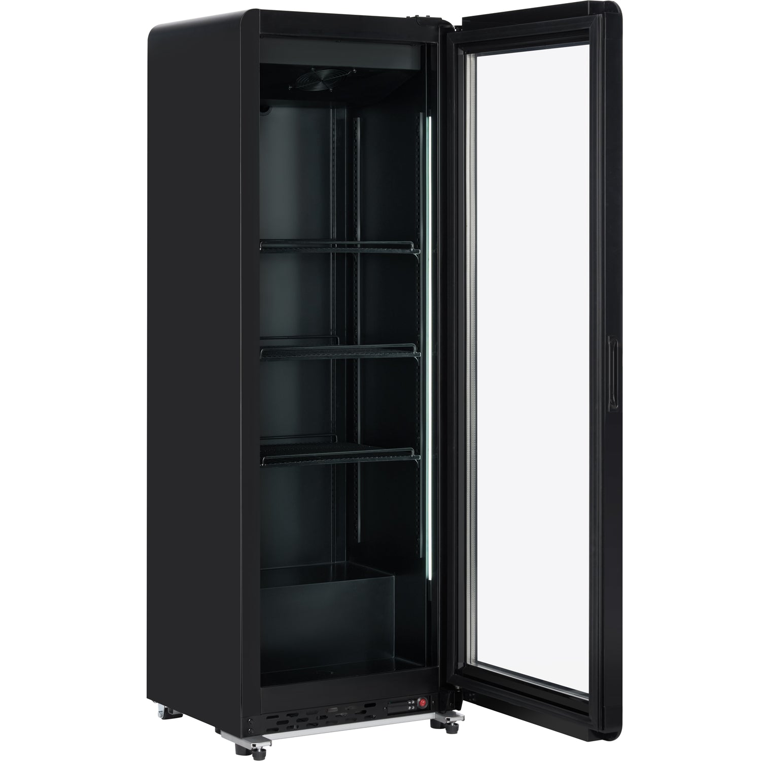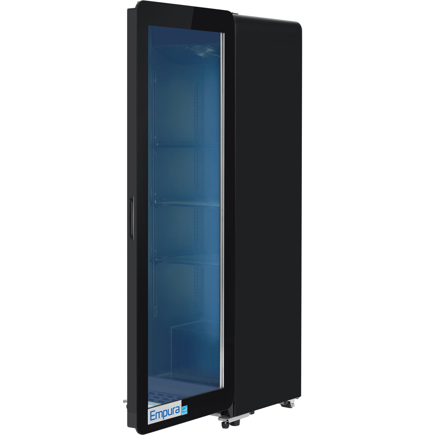 Empura, SS-P210WA-B, Refrigerator Merchandiser, 21"W x 19"D x 62"H, 7.28 cu. ft capacity, single hinged curved glass door, double glazed LOW-E glass, no-frost, self-closing door, black coated metal exterior and interior, finned evaporator, Wanbo compressor, R600a refrigerant, cyclopentane foam insulation, heavy-duty commercial refrigeration for high ambient conditions, LED interior light with switch, electronic controller and thermostat, (3) pvc-coated wire shelves, (2) adjustable front feet and (2) rear castors, 32°F - 50°F temperature range, ventilation cooling, 110v/60Hz/1ph power supply, 5-15P, ETL, ETL-Sanitation, cETLus, Tested and conforms to NSF-7 Standards, ENERGY STAR, Empura Refrigeration