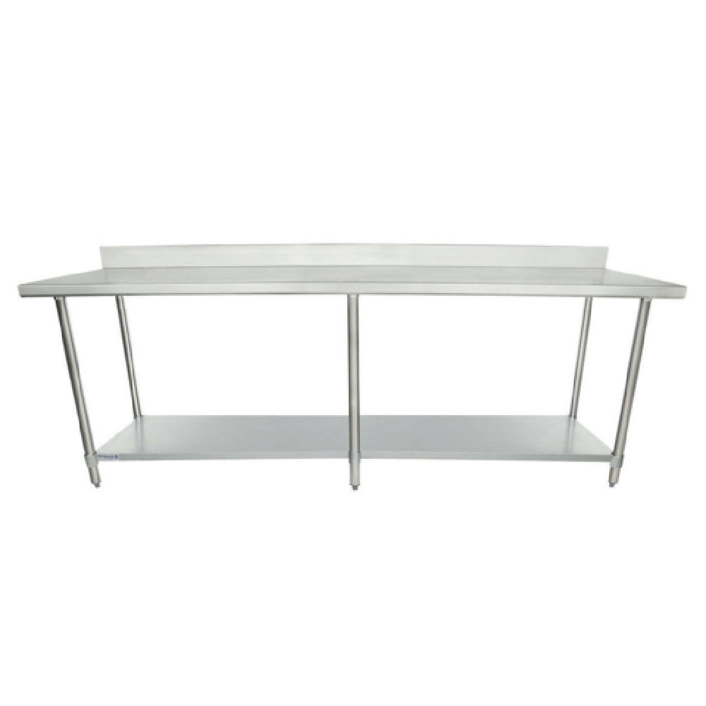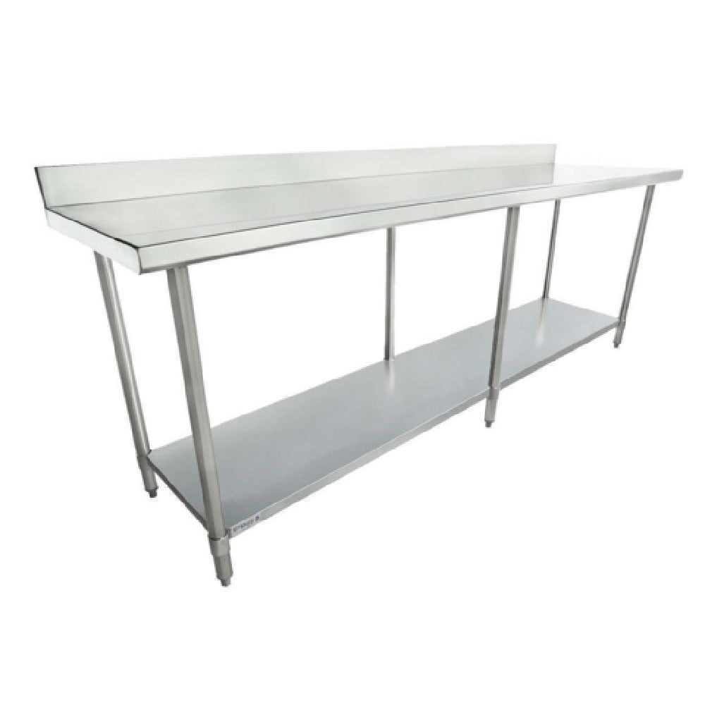 Empura, WT4B2496, Work Table, 96"W x 24"D x 35"H, standard duty, 4 inch backsplash, plastic adjustable bullet feet, galvanized steel 1-5/8" diameter leg, galvanized steel hat channel, 18 gauge under shelf, galvanized steel under shelf, 18 gauge top shelf, 304 stainless steel, top shelf, NSF, Empura Stainless