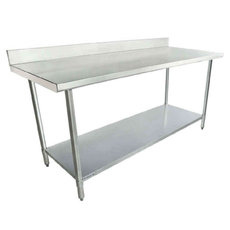 Empura, WT4B3072, Work Table, 72"W x 30"D x 35"H, standard duty, 4 inch backsplash, plastic adjustable bullet feet, galvanized steel 1-5/8" diameter leg, galvanized steel hat channel, 18 gauge under shelf, galvanized steel under shelf, 18 gauge top shelf, 304 stainless steel, top shelf, NSF, Empura Stainless