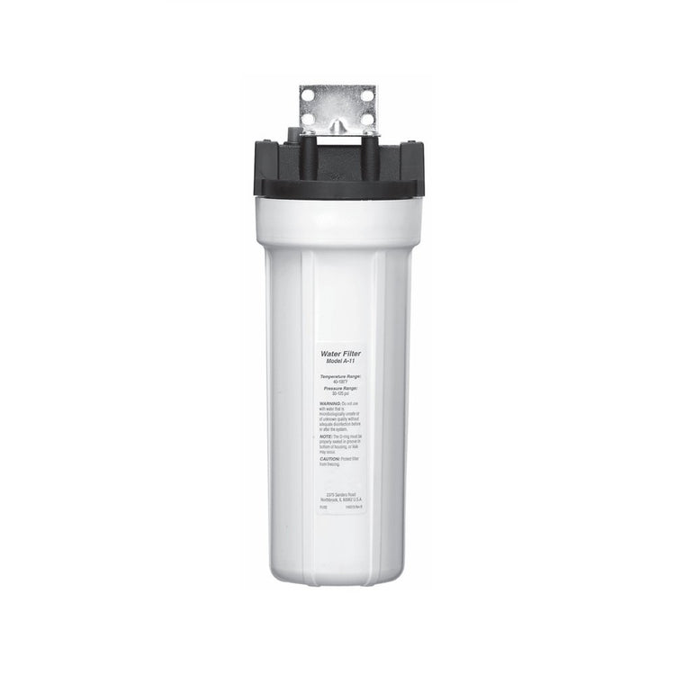 The Everpure EV910002 is a durable, high-quality water filter housing designed for various applications. This Everpure® Water Filter Housing, model A-11, provides a reliable solution for clean, filtered water in food service, healthcare, office, and residential settings. It offers a practical means of housing a 10-inch opaque water filter cartridge (not included), effectively reducing sediment and other impurities.