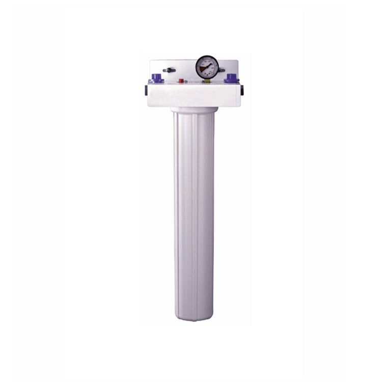 The EV910020 features a robust 20-inch low-profile housing designed for durability and easy integration into existing plumbing systems. The included pressure gauge and pressure relief button offer convenient monitoring and safe operation.