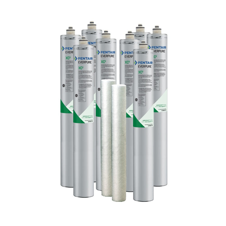 The EV962832 Dual Quad-XC² Water Filter Cartridge Kit features a robust design built for long-lasting performance and seamless integration. The kit includes two EC210 prefilter cartridges and eight XC² cartridges, specifically designed to work together for comprehensive filtration.