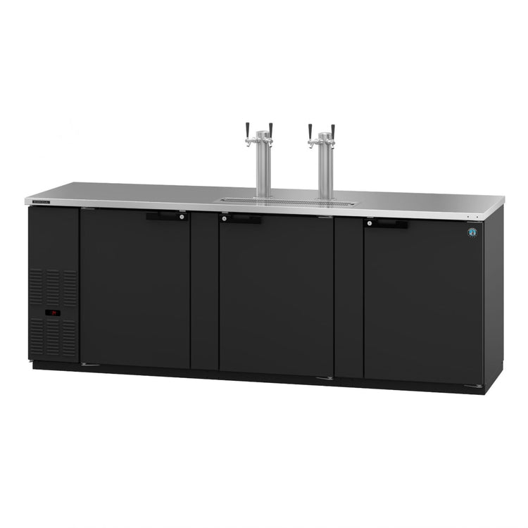 The Hoshizaki DD95 is engineered for durability and seamless integration. The 18-gauge stainless steel top, stainless steel interior, and keg cushions provide robust construction. The side-mount refrigeration system simplifies installation. The unit's dimensions of 95-1/2"W allow for versatile placement.
