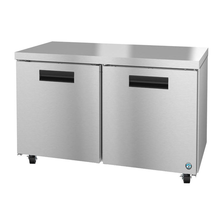 Hoshizaki, UR60A, Steelheart Series Undercounter Refrigerator, reach-in, two-section, 60"W, 17.55 cu. ft., self-contained rear mounted refrigeration system, stainless steel exterior front, sides & top, solid hinged doors, (2) adjustable shelves, (4) 4" stem casters (2 with brakes), R290 Hydrocarbon refrigerant, 1/5 HP, NEMA 5-15P, ETL-Sanitation, cETLus, ENERGY STAR®