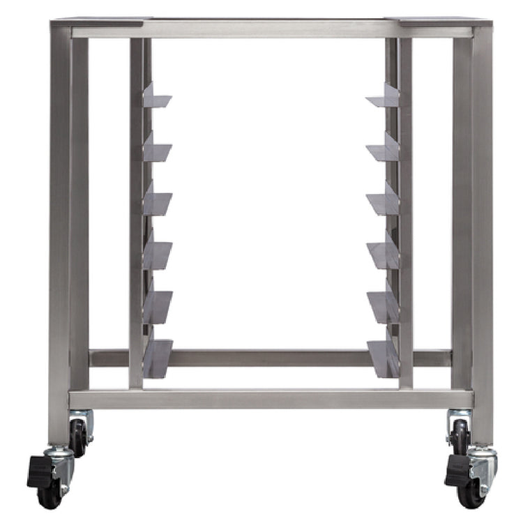Features: The SK2731U features an open base design with slides accommodating six full-size sheet pans. Constructed from stainless steel, it measures 31-7/8" x 25-5/8" x 34-5/8" and comes standard with 3" casters for effortless mobility. Its compatibility with Moffat's E27, E28, and E31 models ensures seamless integration into existing workflows.