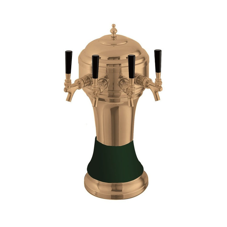 Benefits: This tower provides consistent, perfectly chilled draft beer thanks to its glycol-cooled system. Reduced foam and waste contribute to cost savings over time. The attractive design with a gold-tone brass body and green ceramic skirt enhances the visual appeal of any bar.