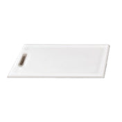 The Perlick Corporation BBC-CB Tobin Ellis Signature Cutting Board offers a professional-grade cutting surface designed for commercial food service environments. Measuring 17" wide by 13" deep and 1/2" thick, this white cutting board is engineered to fit precisely within the space of one Perlick BBS36C glass rack, optimizing workspace organization. The Tobin Ellis Signature Cutting Board enhances food preparation with its integrated handle hole for easy transport and a drip groove to contain liquids.