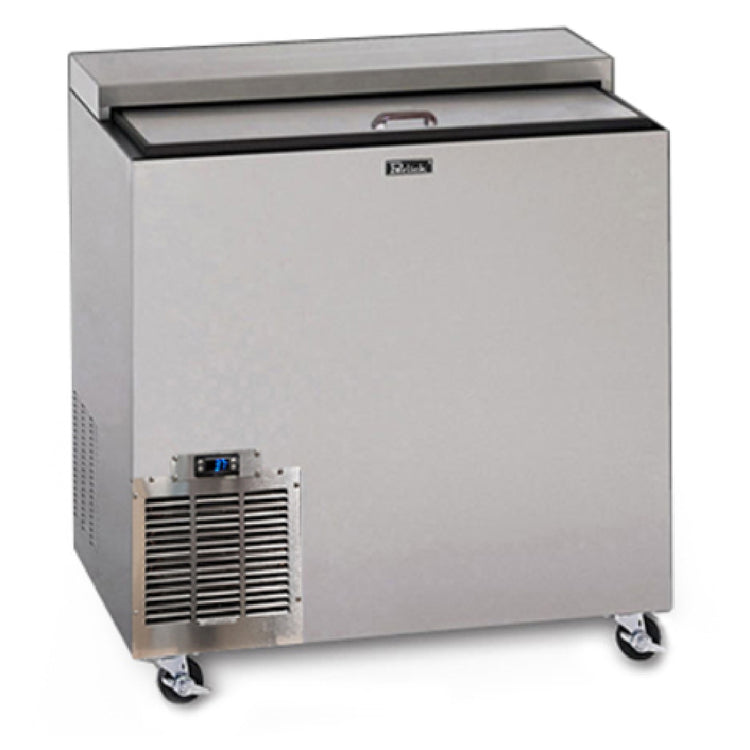 Features: The FR36RT-3-SS_CAST features a robust stainless steel interior and exterior for enhanced durability and hygiene. The dent-resistant stainless steel sliding top door with die-cast handles ensures easy access and long-lasting performance. The unit seamlessly integrates into underbar setups.