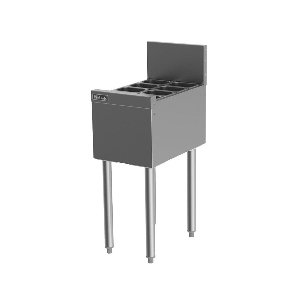 The Perlick Corporation TS12U3 TS Series Underbar Bottle Storage Bin provides insulated storage for bottles and condiments, ideal for bars, restaurants, and other food service establishments. This stainless steel unit offers a practical solution for organizing and chilling beverages and ingredients.