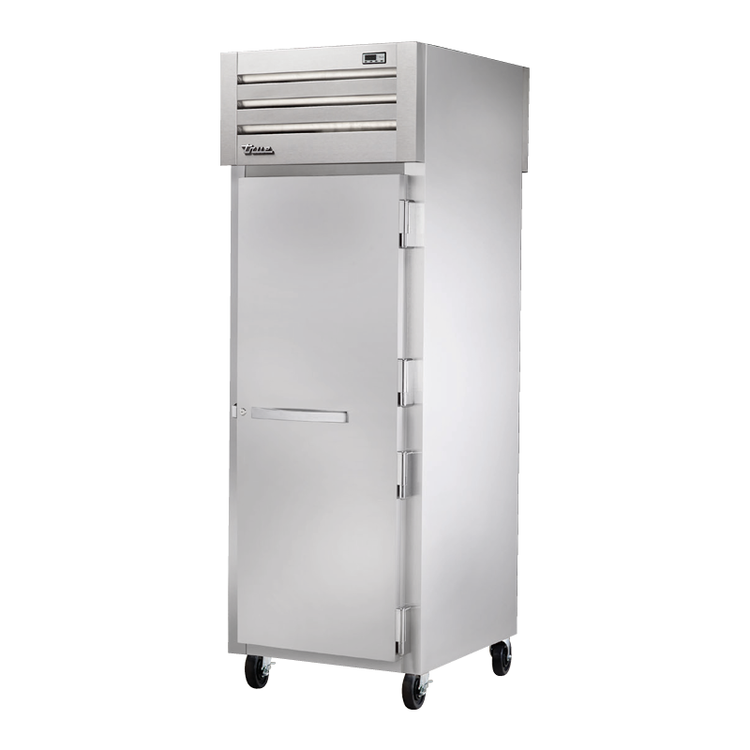 Durable Construction and Convenient Features. The STG1RPT-1S-1S-HC features a stainless steel front, aluminum sides and interior, and robust cam-lift hinges for long-lasting durability. The unit is designed for seamless integration into existing kitchen workflows. The locking doors, both front and rear, enhance security.