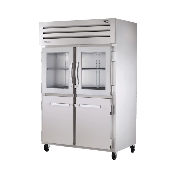 The True Manufacturing SPEC SERIES® STG2R-2HG/2HS-HC is a two-section reach-in refrigerator designed for general foodservice applications. This unit offers a combination of glass and stainless steel doors for both visibility and security, making it suitable for various commercial kitchens, restaurants, and other foodservice environments.