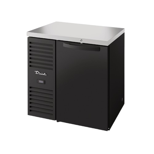 The True Manufacturing TBR32-RI, a one-section refrigerated back bar cooler, offers a compact and efficient solution for cold beverage storage. Ideal for bars, restaurants, and other food service establishments, this cooler maximizes space while ensuring drinks are readily available and perfectly chilled. Its 32-inch width fits seamlessly into various settings, providing ample storage for up to 38 six-packs of cans or 21 six-packs of bottles.