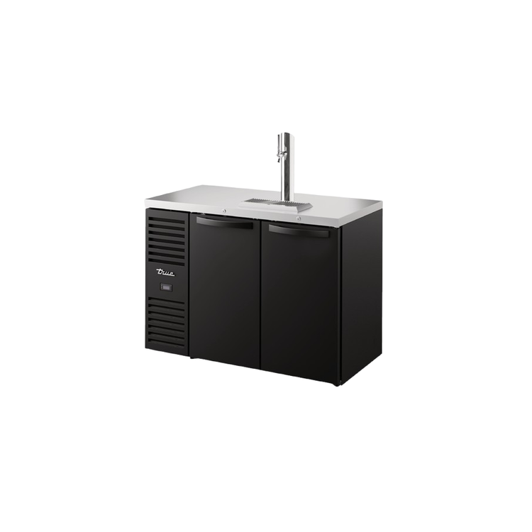 The True Manufacturing TDR48-RISZ1-L-B-SS-1 Refrigerated Draft Bar Cooler offers a two-section, 48-inch wide solution for dispensing chilled beverages. Ideal for bars, restaurants, and other food service establishments, this unit ensures consistent cold product availability, enhancing customer satisfaction. This model features a side-mounted, self-contained refrigeration system, simplifying installation and maintenance.