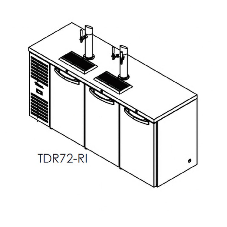 The True TDR72-RI offers a combination of functionality and durability, making it a valuable asset for any commercial bar setting. Contact an authorized True Manufacturing distributor for purchasing information.